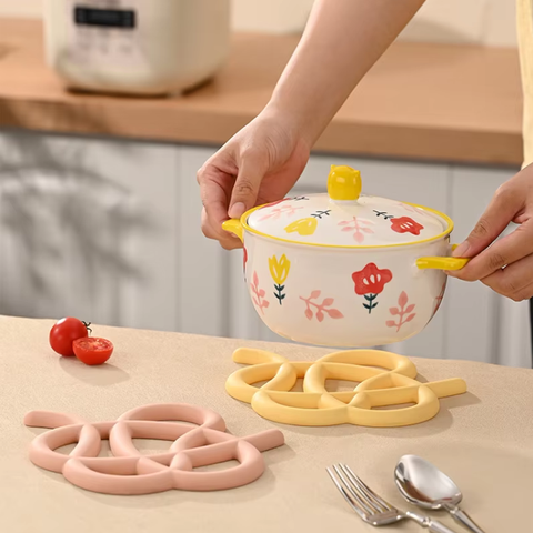 OEM ODM Resistente ao Calor Silicone Isolante Cozinha Mats & Pads Estilo Coreano Irregular Cozinha Ferramentas para Sopa Potes e Pratos