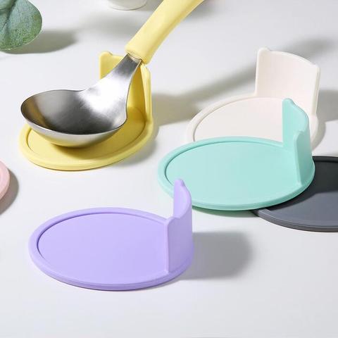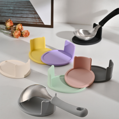 Coreano venda quente antiaderente antiaderente janela ferramenta roxo amarelo luz verde silicone colher titular para colher de sopa colher de arroz