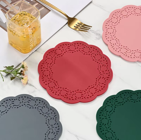 Nordic Design Silicone Placemats Coasters Bonito Oco Lace Home Office Cozinha isolamento térmico Mats Fábrica direta para uso alimentar
