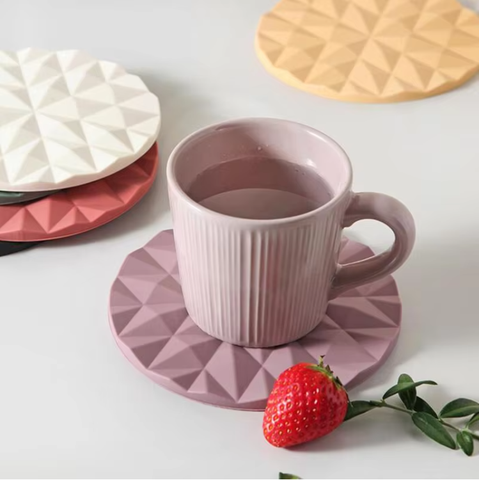 Coaster resistente ao calor Eco-Friendly da grão do diamante do estilo coreano bonito da esteira da cozinha do silicone do ODM do OEM