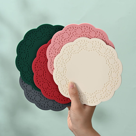 Direto da fábrica Nordic Design Silicone Placemats Bonito Oco Lace Coasters para Panelas Panelas Home Office Cozinha Isolamento Térmico Mat